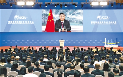 4月21日上午,博鰲亞洲論壇2022年年會開幕式在海南博鰲舉行,國家主席習近平以視頻方式發(fā)表題為《攜手迎接挑戰(zhàn),合作開創(chuàng)未來》的主旨演講。 |